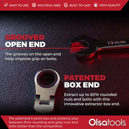 Olsa Tools Flex Head Ratcheting Wrench Features