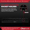 - Each magnetic socket organizer can hold 3 complete sets of its respective drive size.