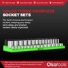 • Each magnetic socket organizer can hold 3 complete sets of its respective drive size.