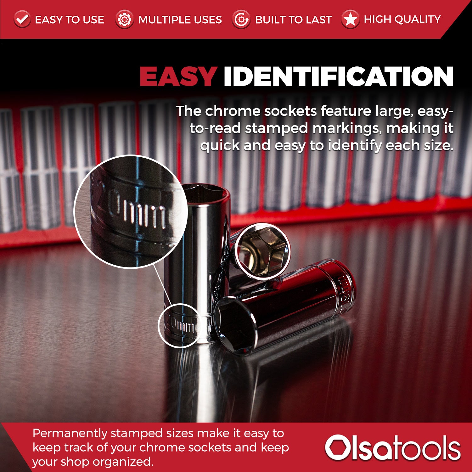 This set features a large font size stamping to help make it easy to keep your shop organized and save your time!