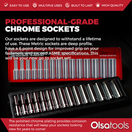1/2" Drive Metric Deep Chrome Socket Set