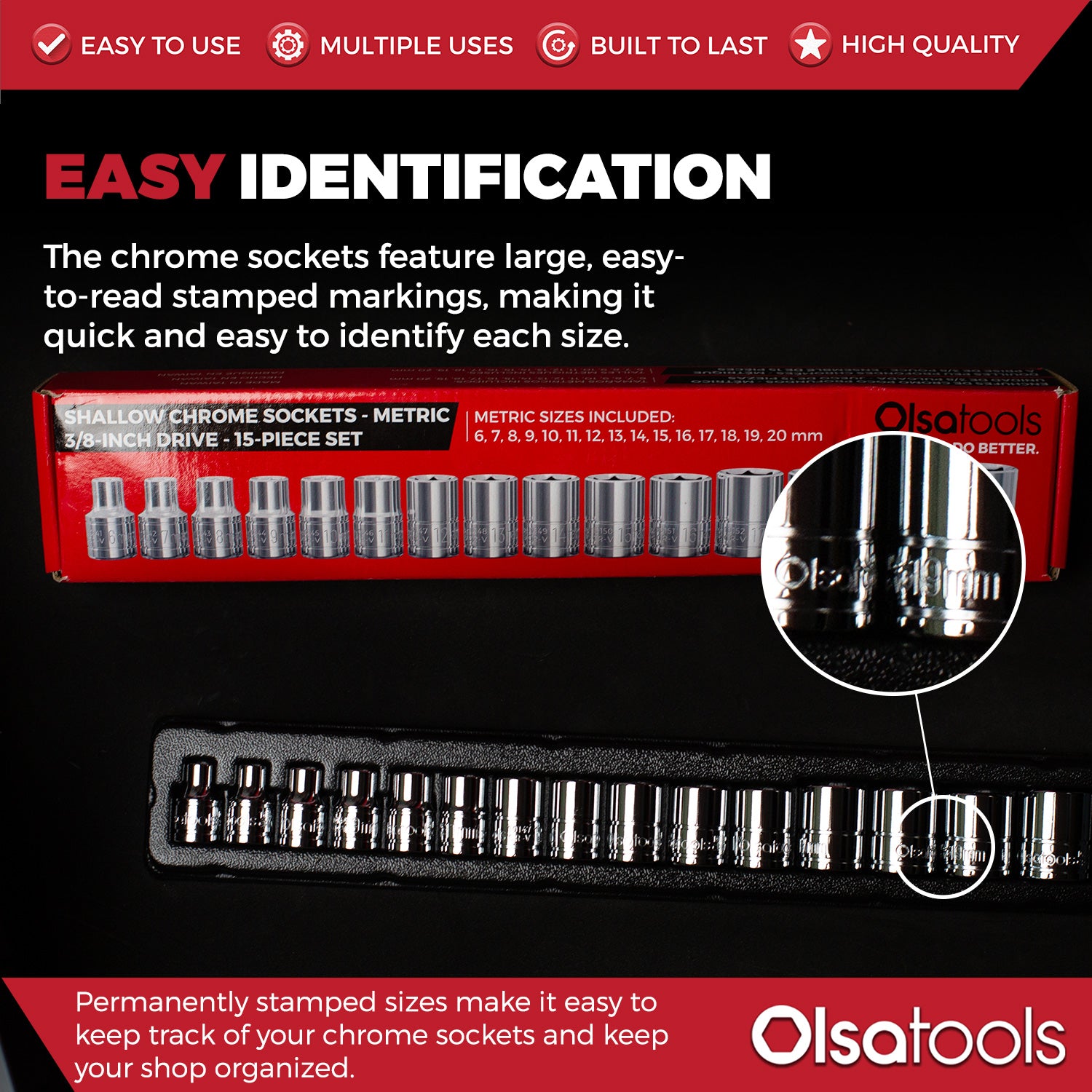 These socket sets include the most popular size range for Metric and SAE sockets.