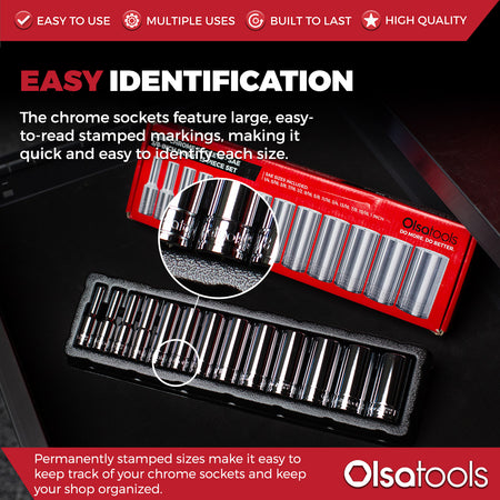 1/2" Drive SAE Deep Chrome Socket Set