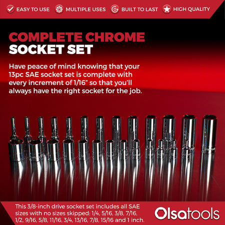 3/8" Drive SAE Deep Chrome Socket Set