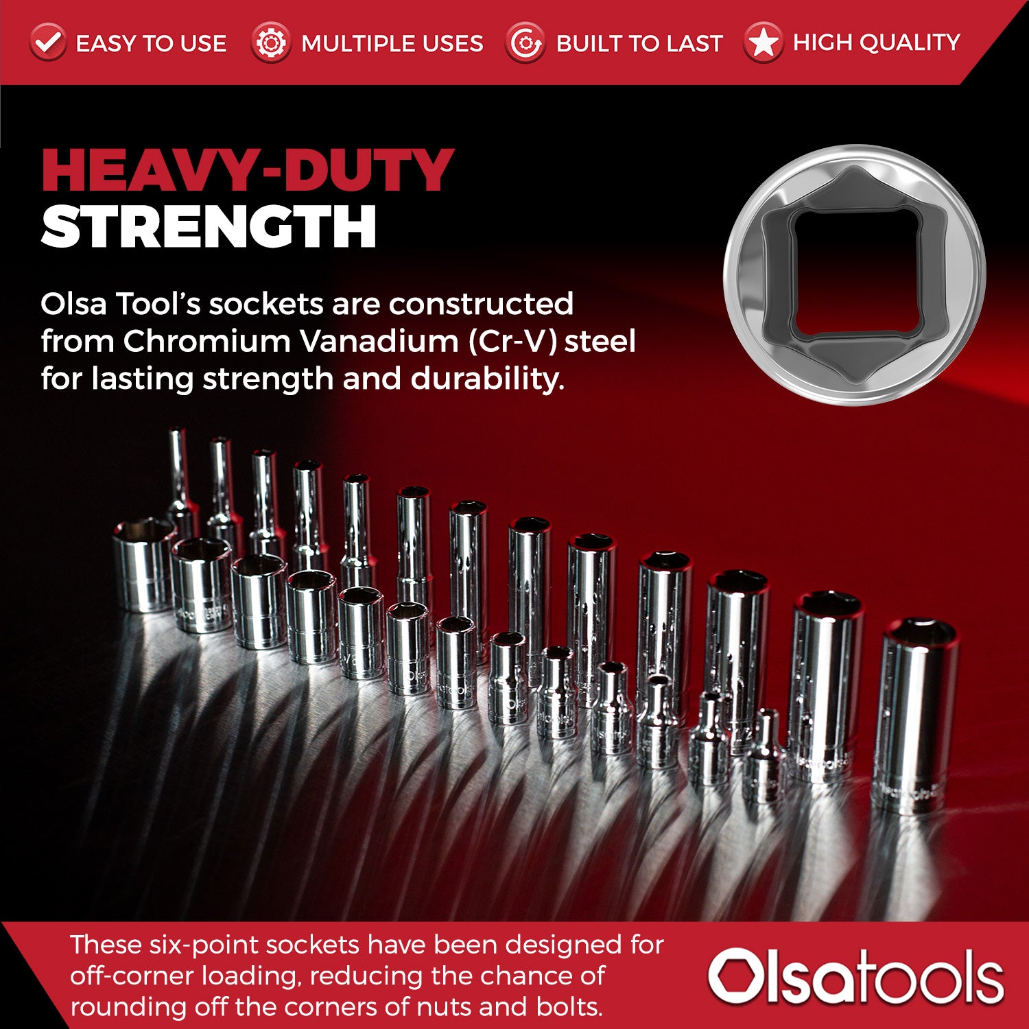 • Socket set material: Chrome vanadium steel (Cr-V)