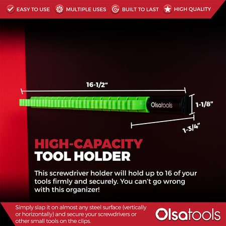 Magnetic Screwdriver Organizer | Holds 16 / Black / Green