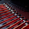 - The full metric ratcheting combination wrench set includes 8, 9, 10, 11, 12, 13, 14, 15, 16, 17, 18, and 19mm ratcheting wrenches.