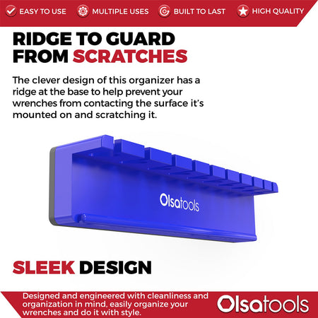 The ridge on the base of our Wrench Organizer prevents your wrenches from scratching or denting whatever surface its mounted on, ensuring their longevity and performance.