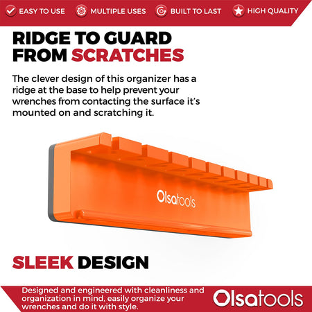 The ridge on the base of our Wrench Organizer prevents your wrenches from scratching or denting whatever surface its mounted on, ensuring their longevity and performance.