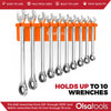 Our Magnetic Wrench Holder securely holds up to 10 SAE or metric wrenches, keeping them easily accessible and organized.